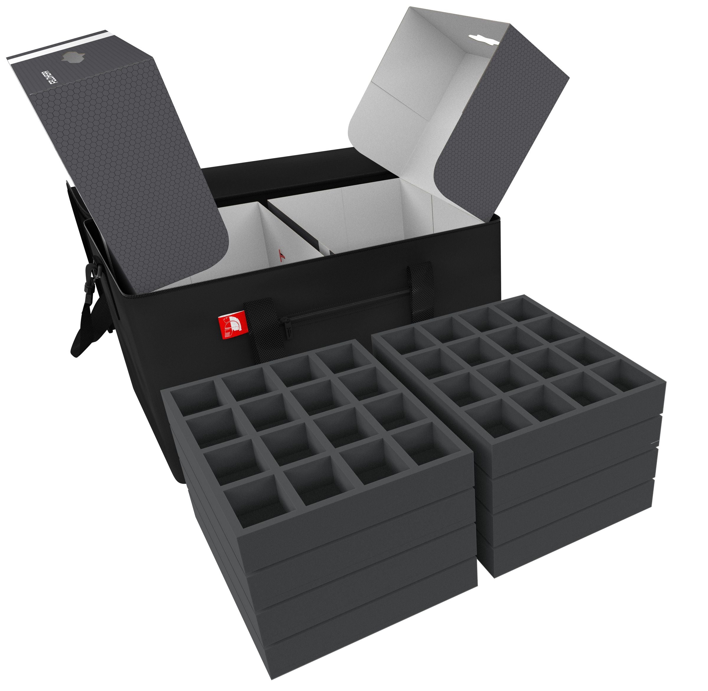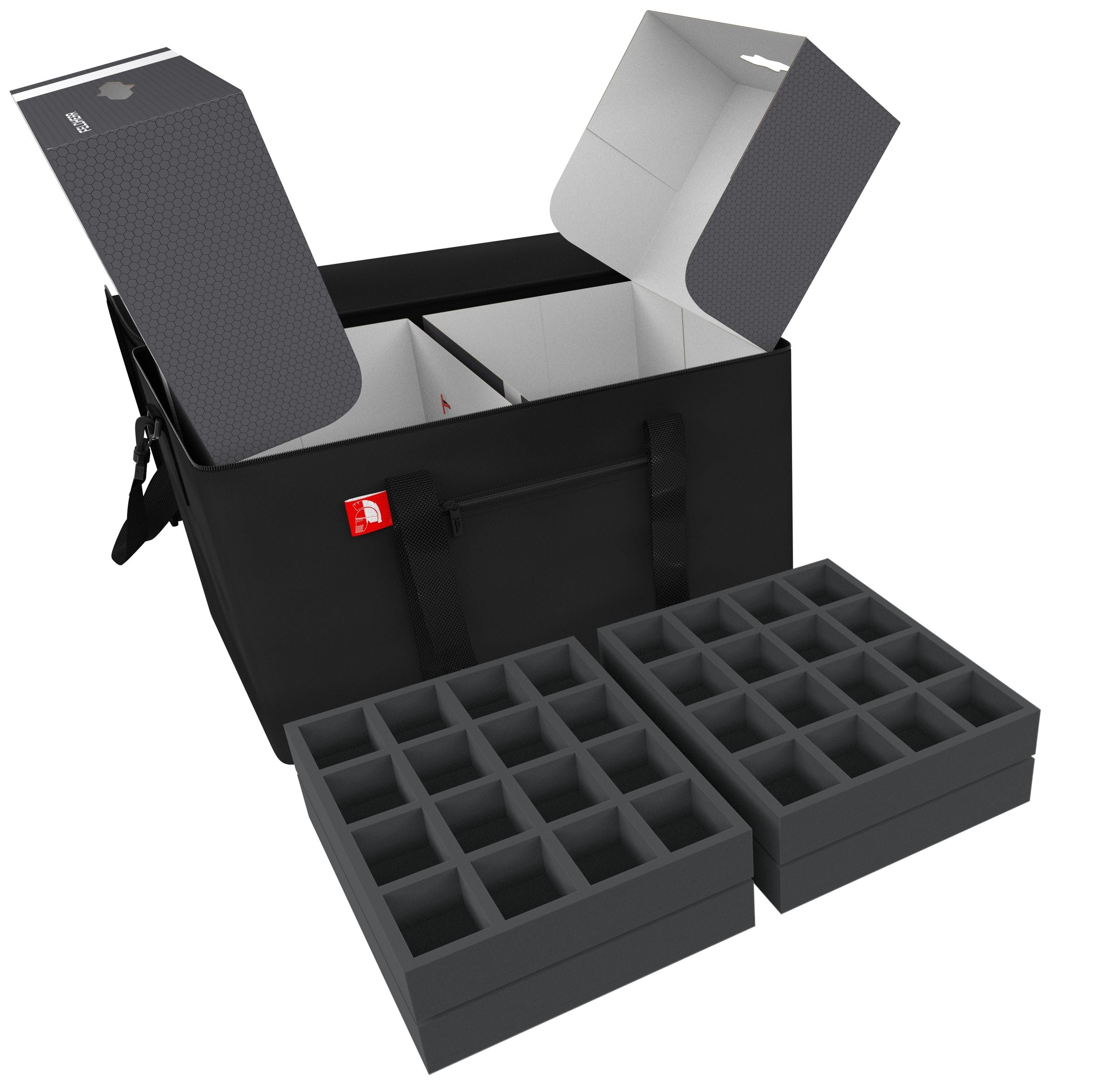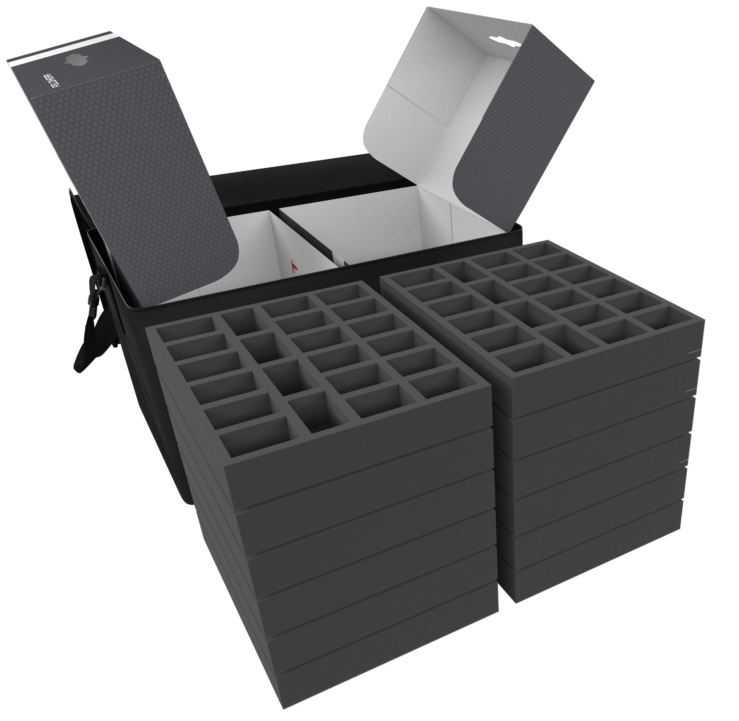 So that your Krosmaster collection does not overwhelm you, we have the ideal set for you. The convenient Feldherr Transporter with four foam-filled Storage Boxes FSLB150 offers you space for more than 215 Krosmaster figures of different sizes.