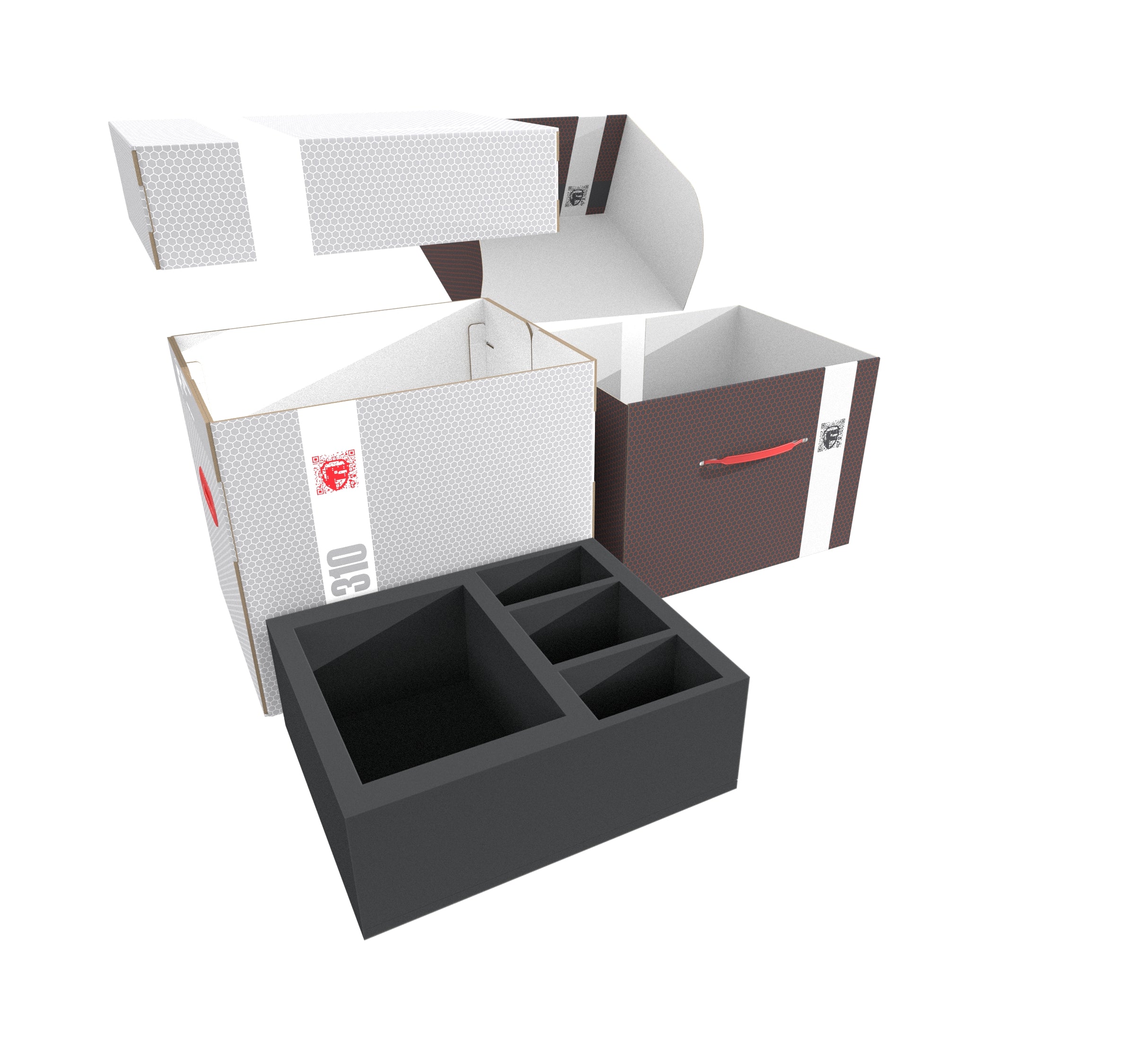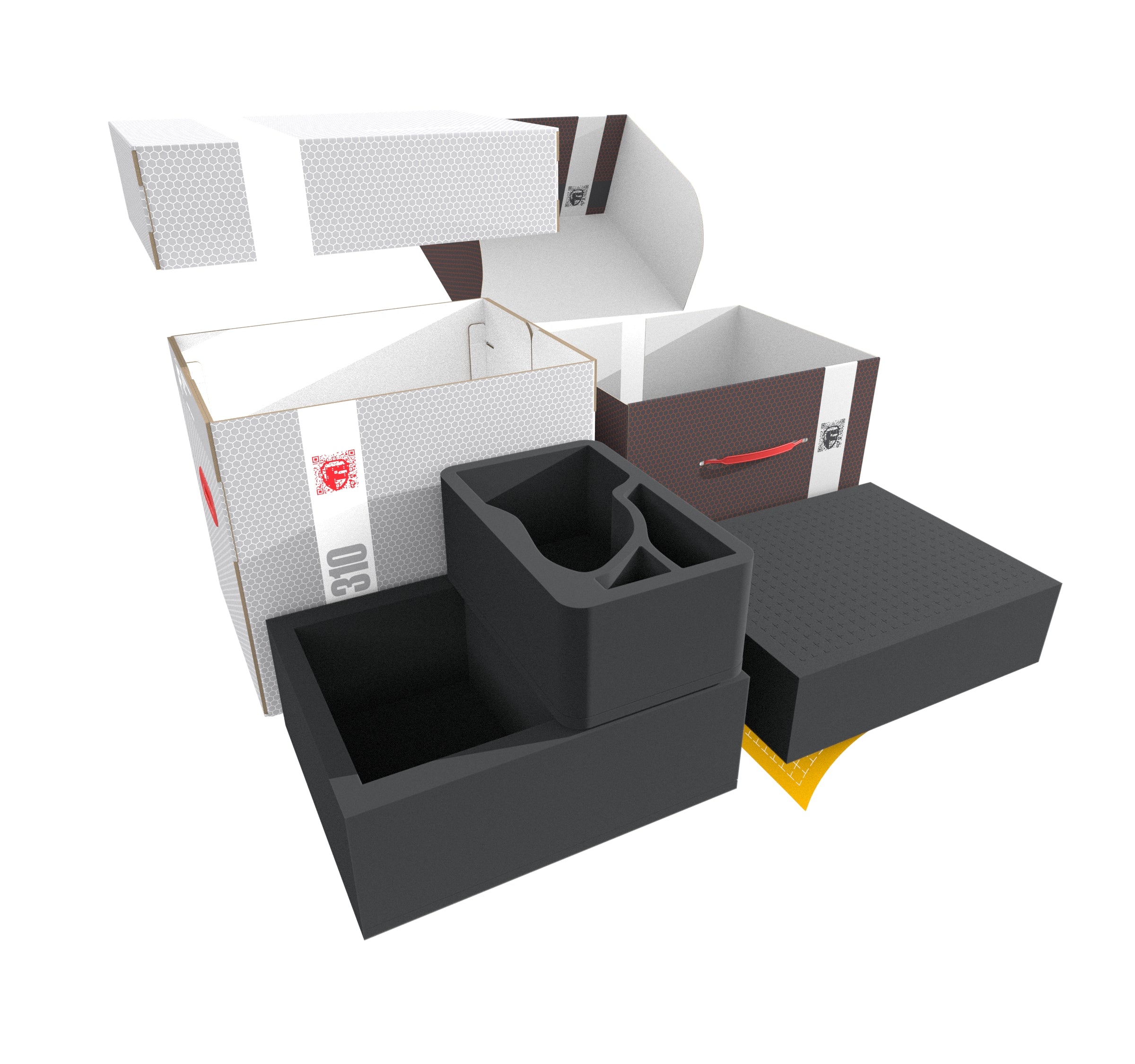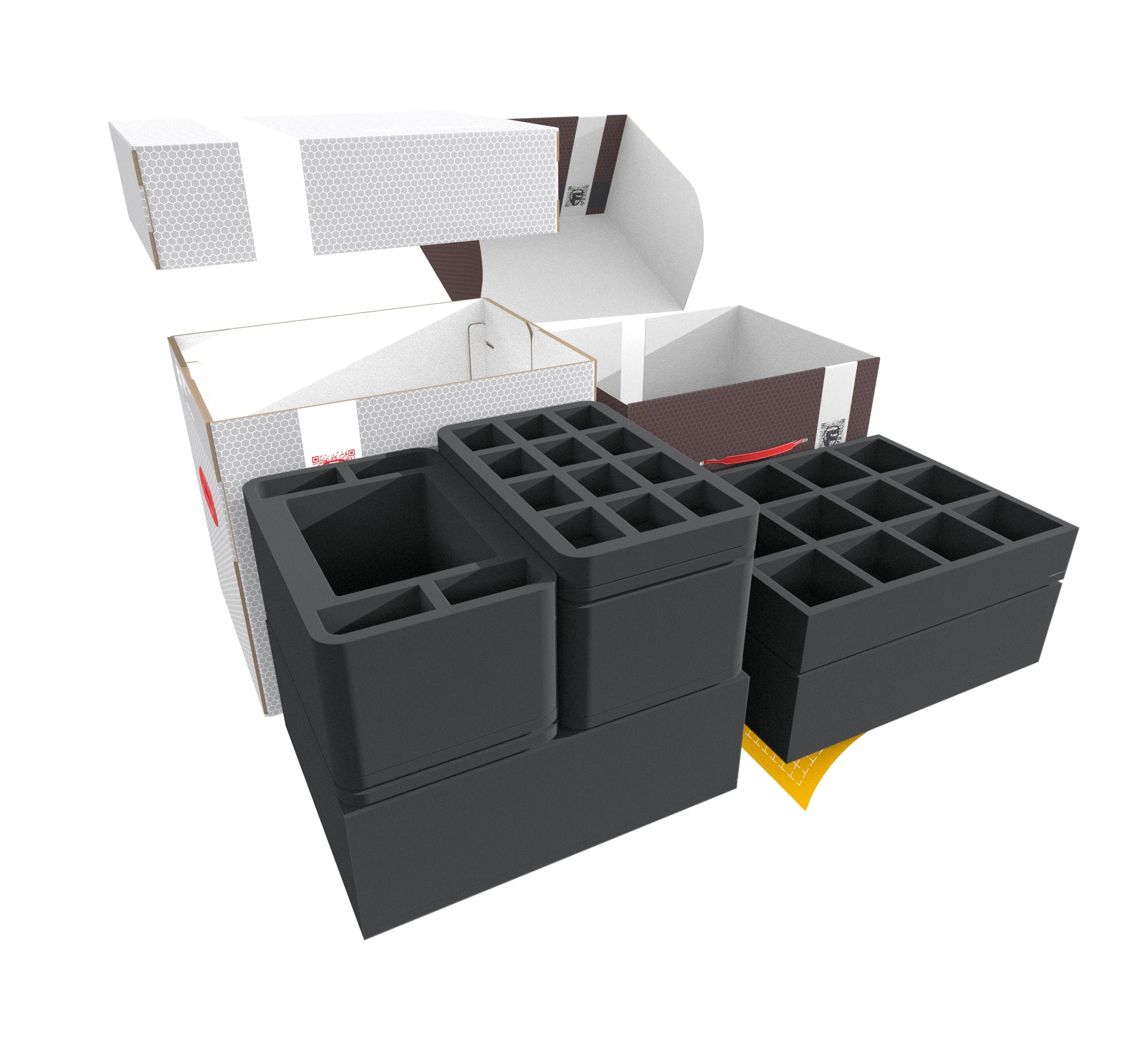The large foam toppers complete the set. They ensure that your miniatures are well protected, and nothing bumps against the lid of the Storage Boxes.