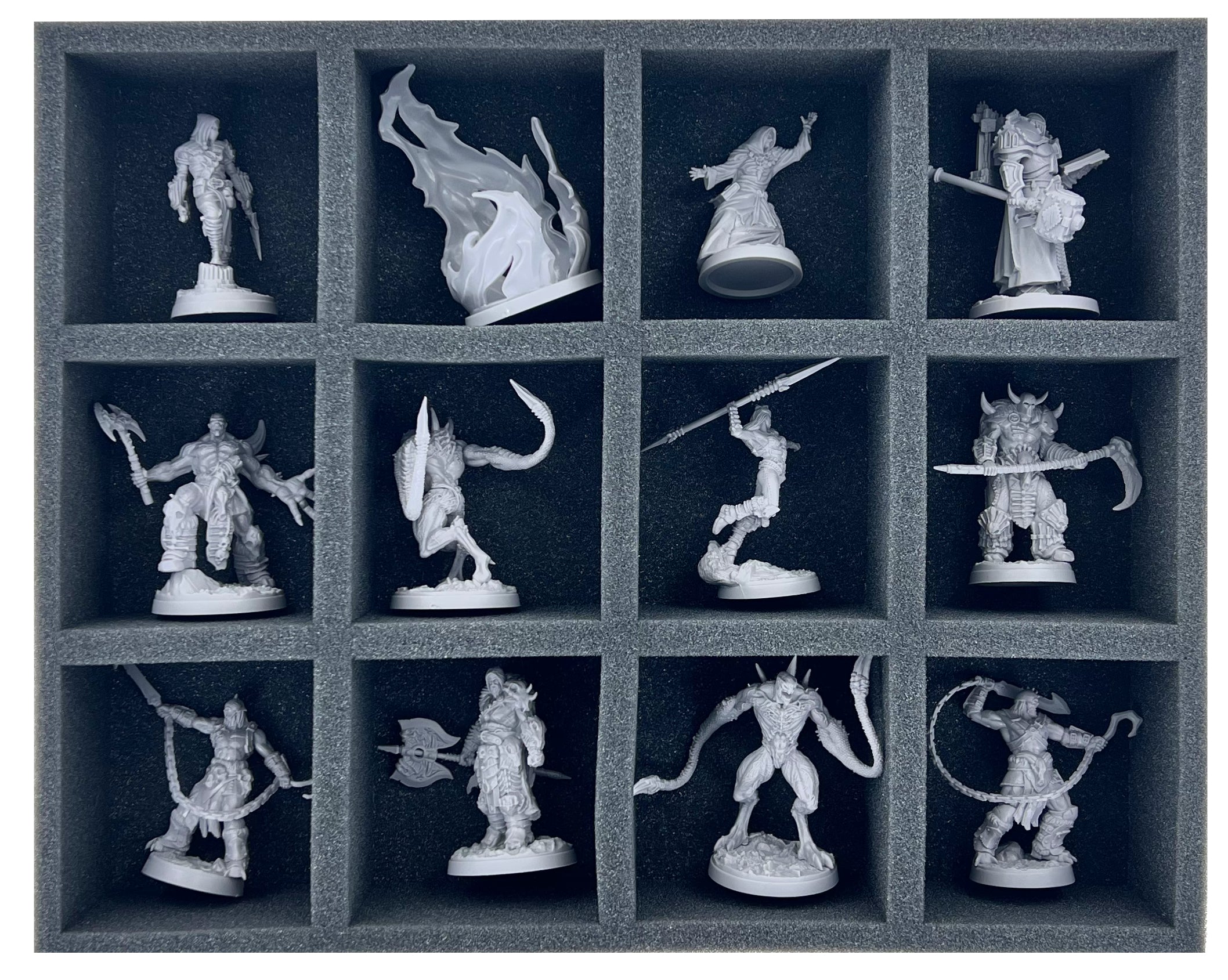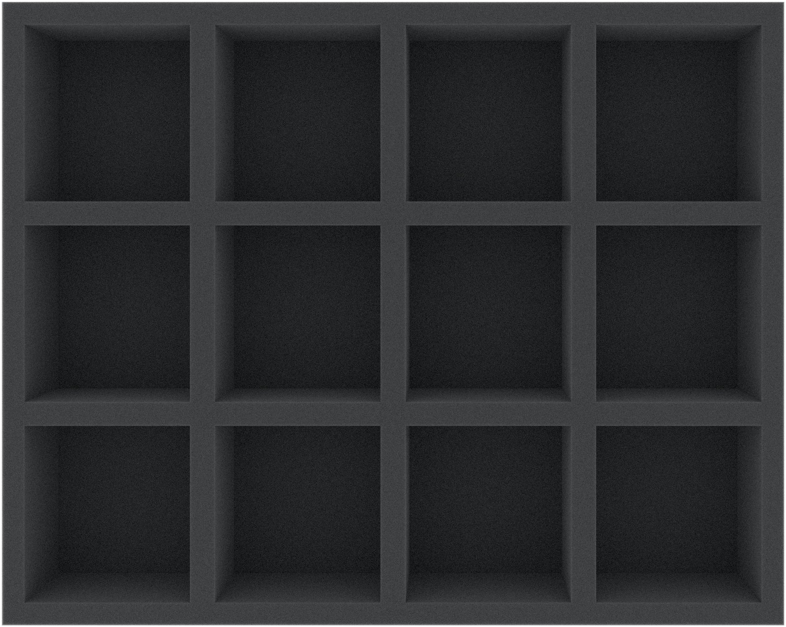 - 1 Full-Size foam tray with 12 compartments for medium-sized miniatures (FSMEPQ060BO)