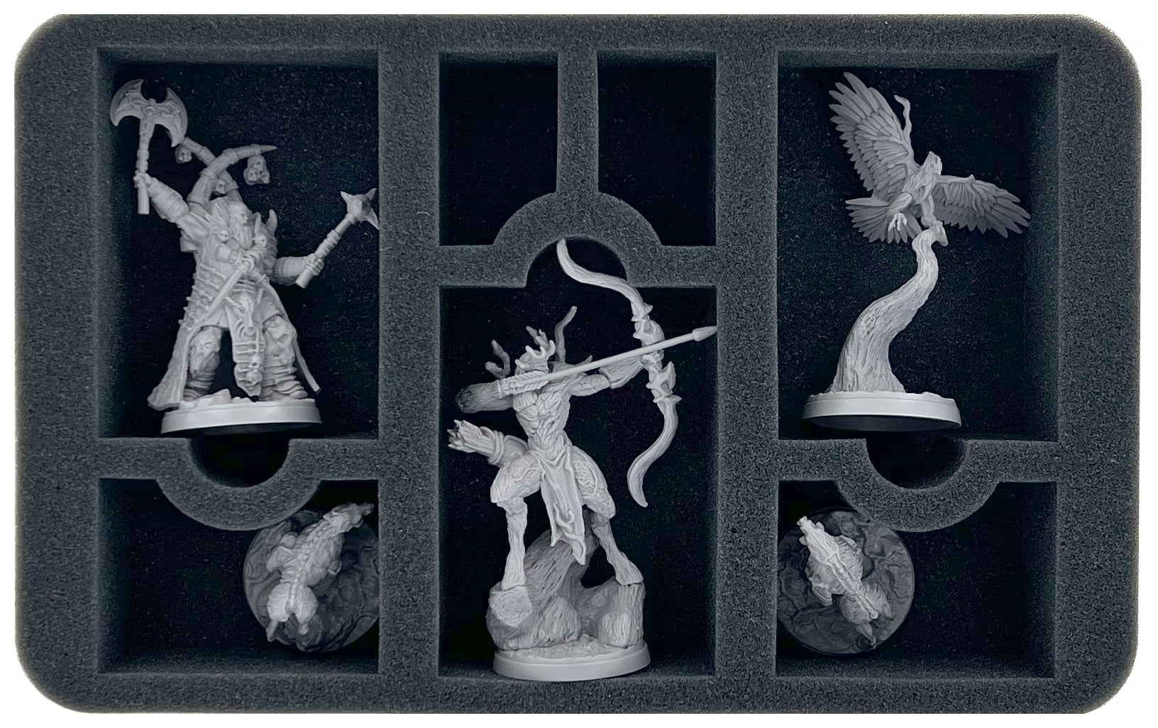 - 1 Half-Size foam tray with five compartments for giant and standard miniatures (HSMEVE120BO)