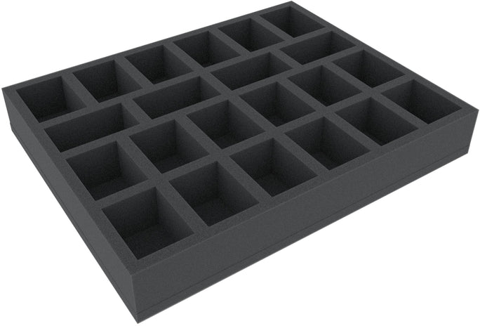 Up to 22 Chaos warriors find a safe place in this Half-Size foam tray. The different sized compartments are especially suitable for storing Slaves to Darkness standard infantry miniatures in a clear and well protected way.