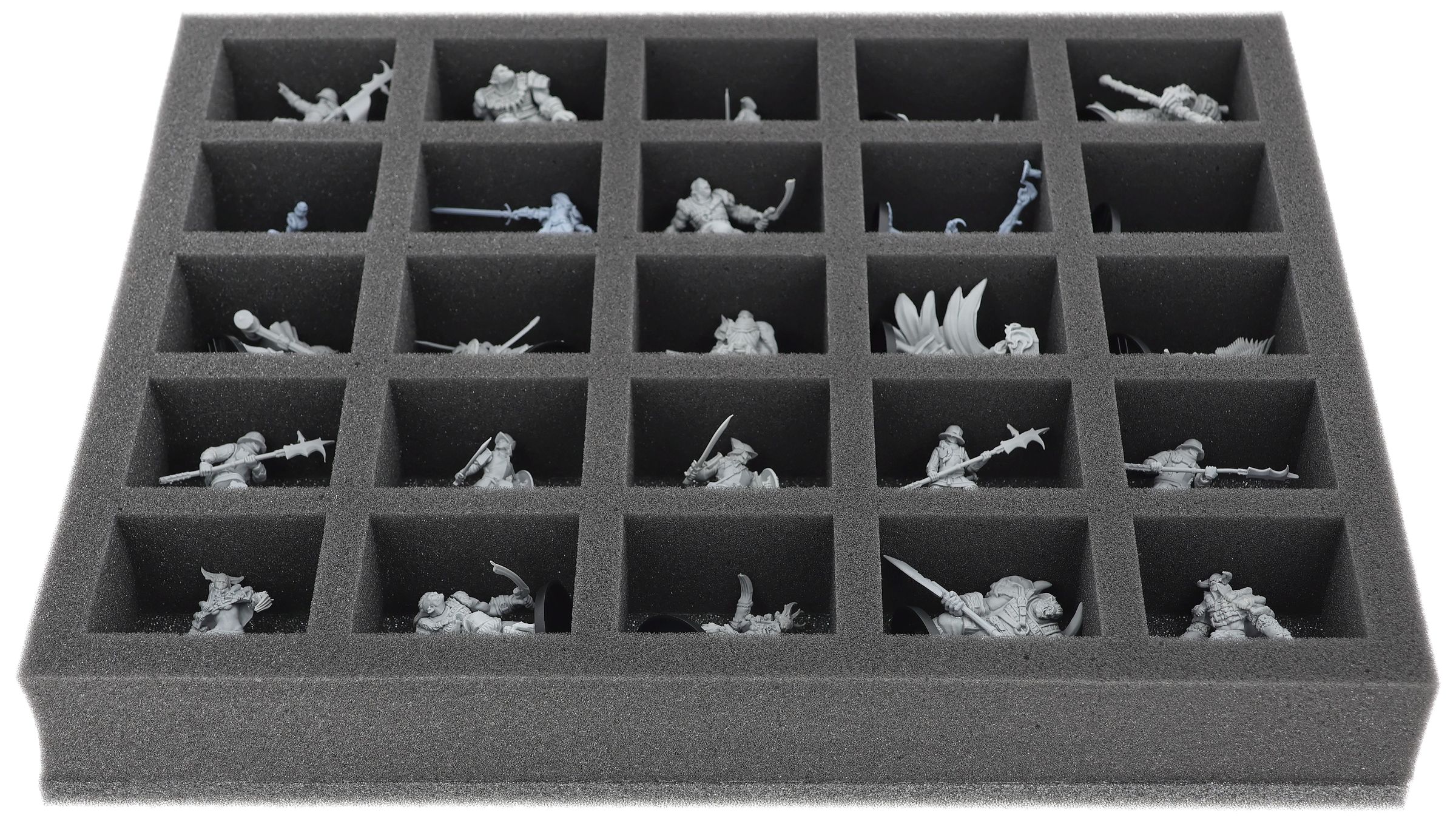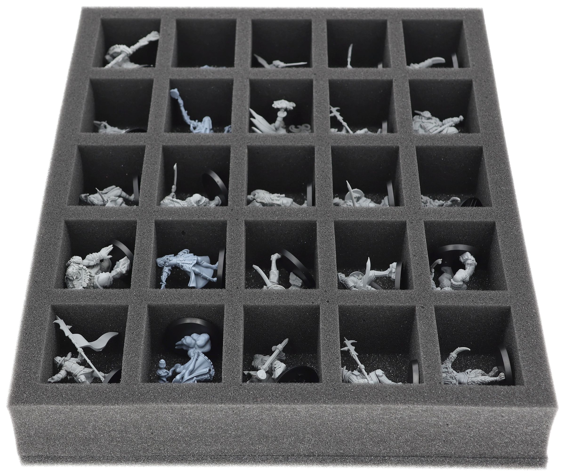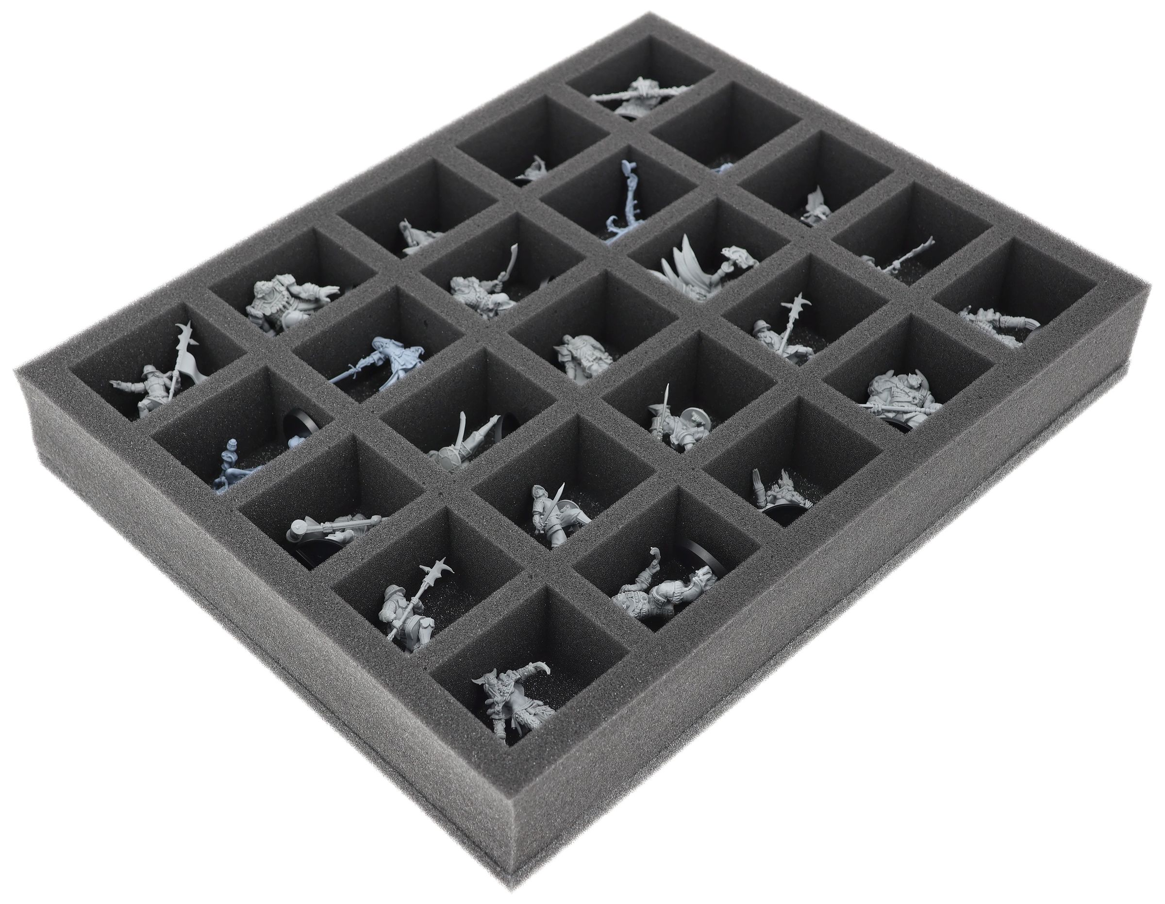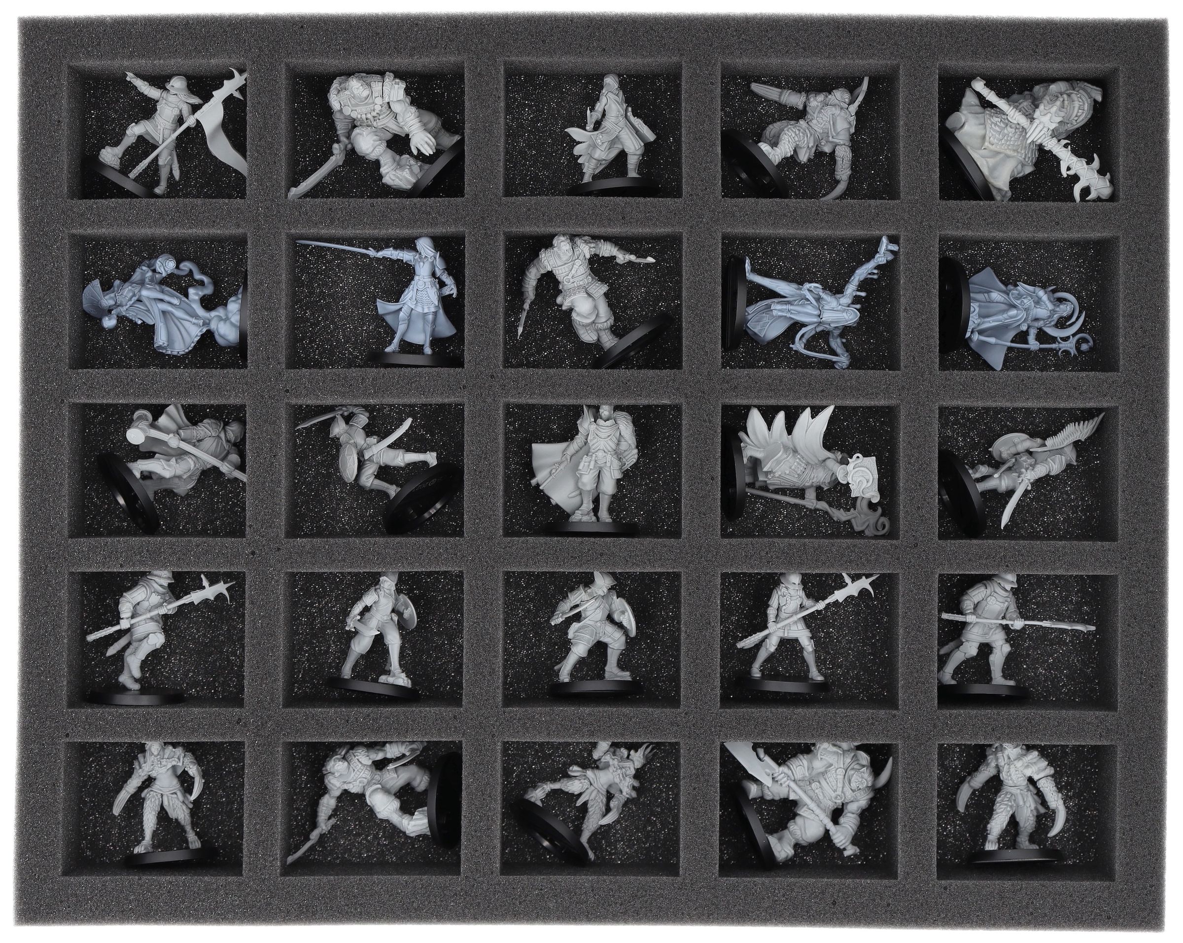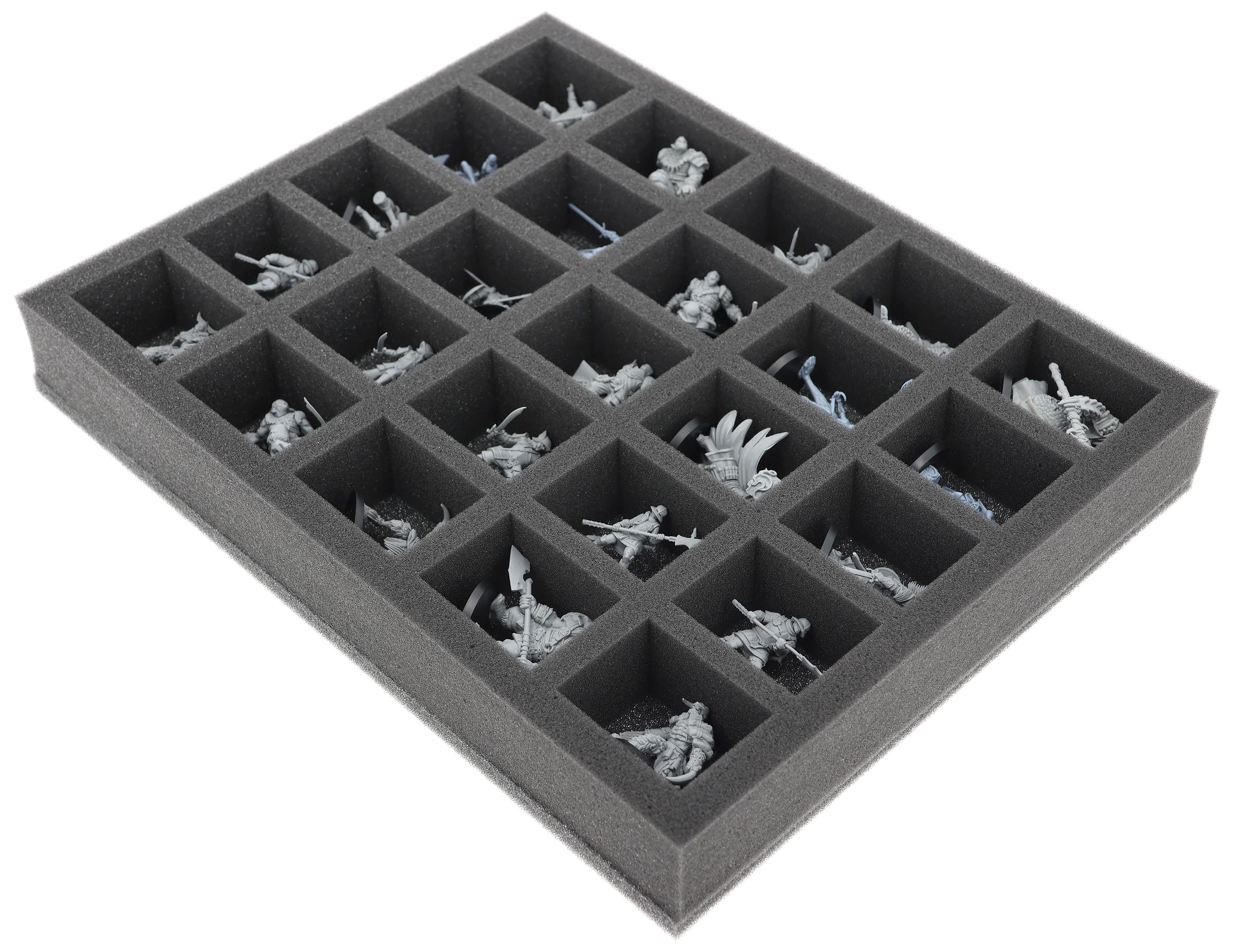 On this Feldherr foam tray you have space for up to 25 miniatures of your army. The insert is especially suitable for storing the Hegemony of Embersig, Feudom and similar sized models.