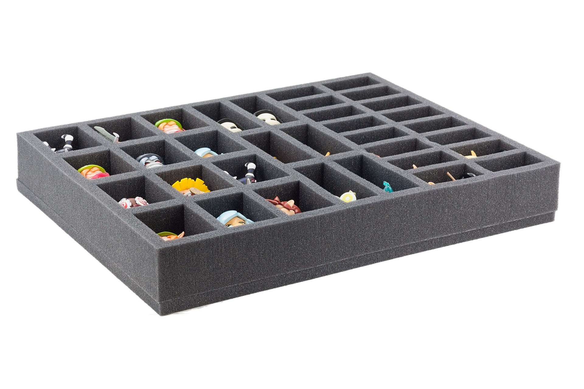 This foam tray has 34 slots for your Kosmaster Miniatures - in 4 different sizes. Foam tray is ready to use.