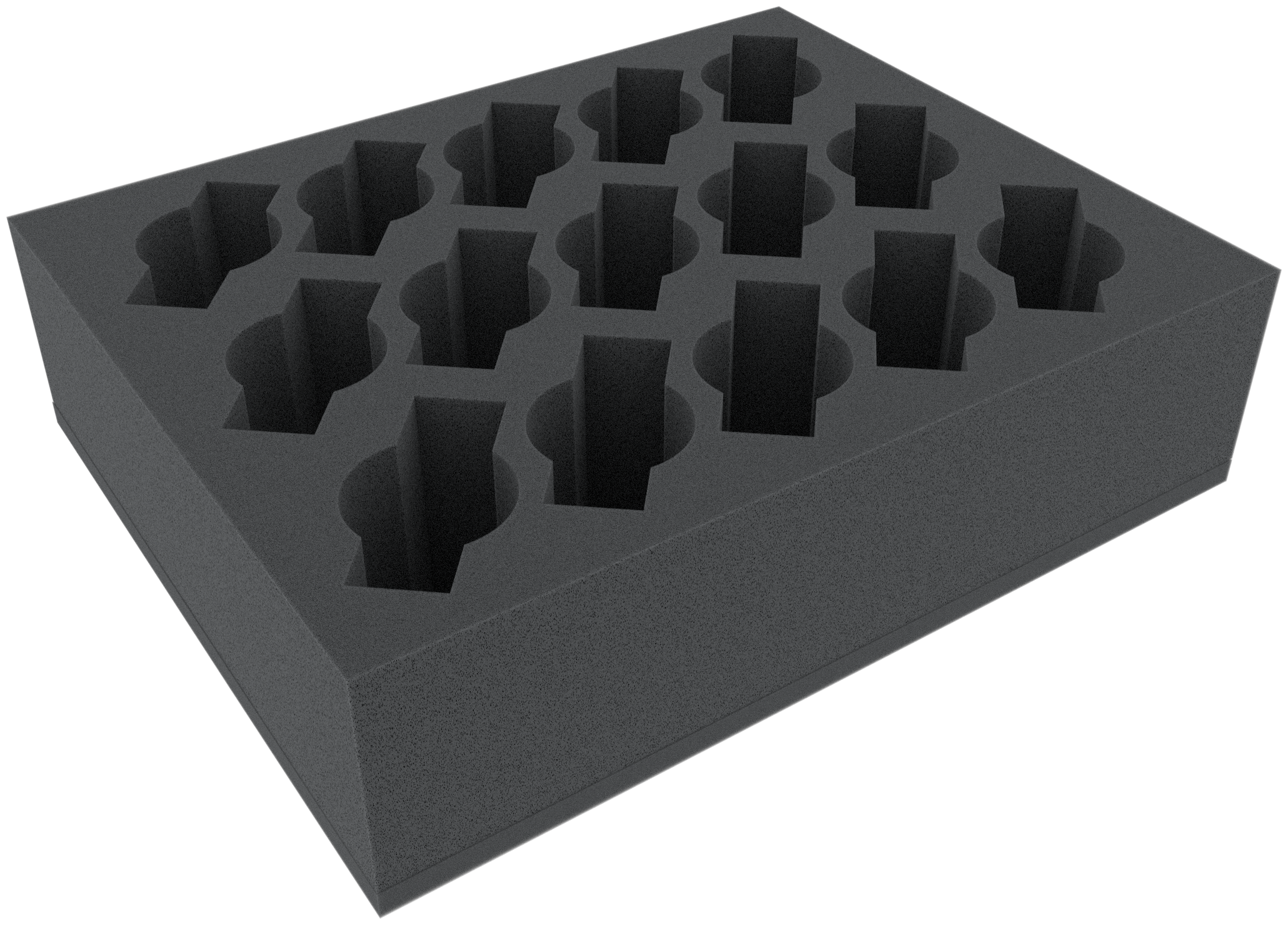 • The 15 compartments have the dimensions: 50 mm x 85 mm x 70 mm. The round compartments have a diameter of 50 mm. The rectangle has the base area of approx. 85 mm x 28 mm.