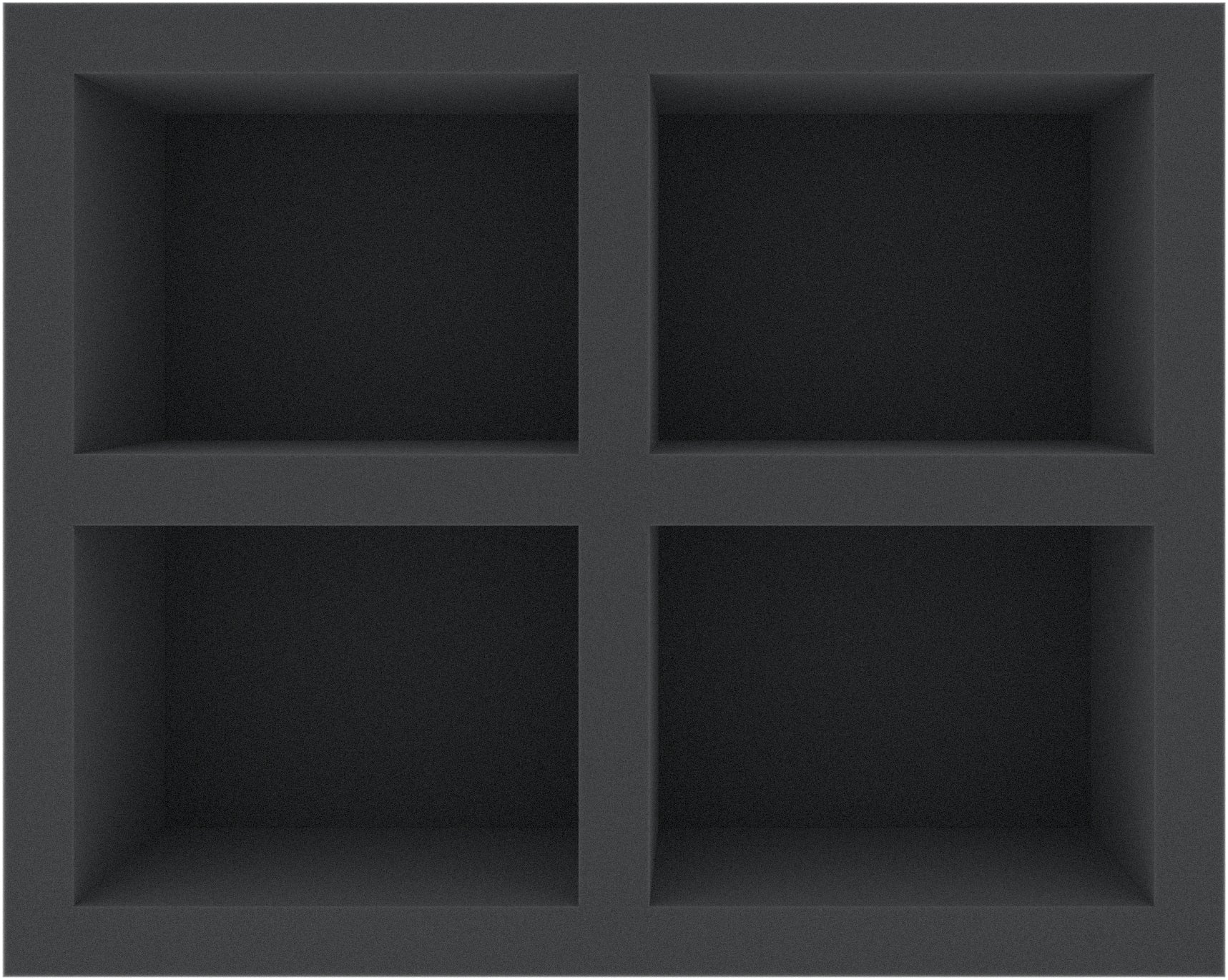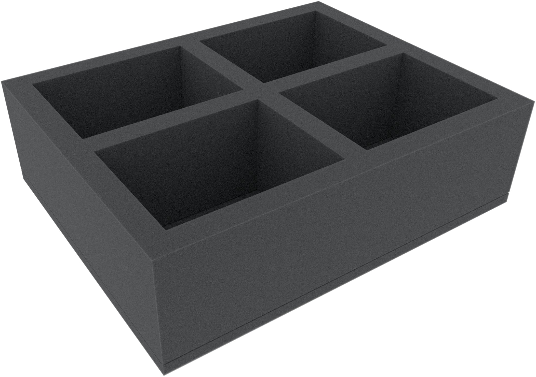 This Full-Size foam tray is divided into 4 compartments. The four compartments of equal size are ideal to safely store larger figures, such as vehicles, monsters or character models, from various board games and tabletop systems.