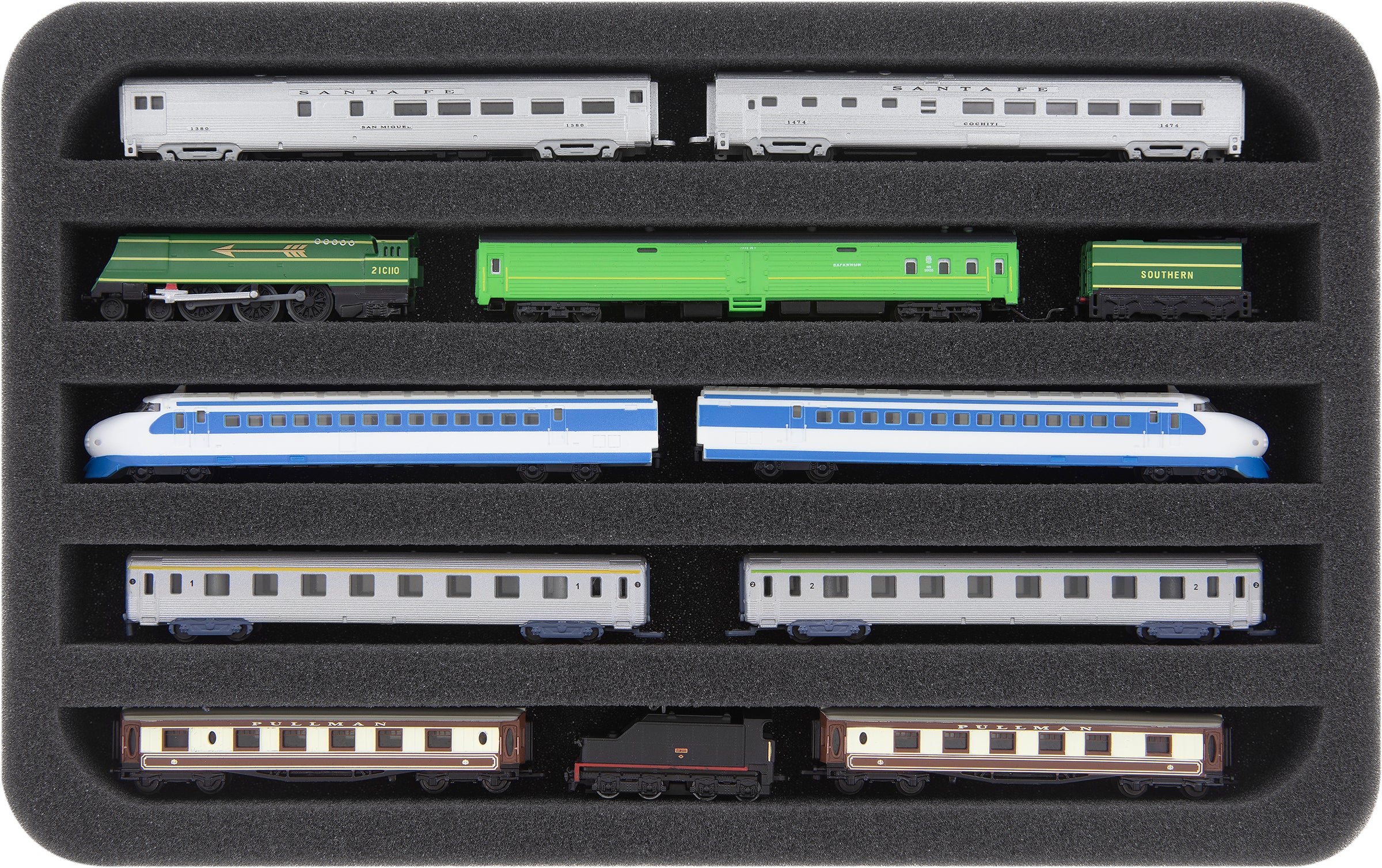 HS030A008 Foam inlay Z Gauge - horizontal - 5 slots for model railway locomotives, wagons and vehicles