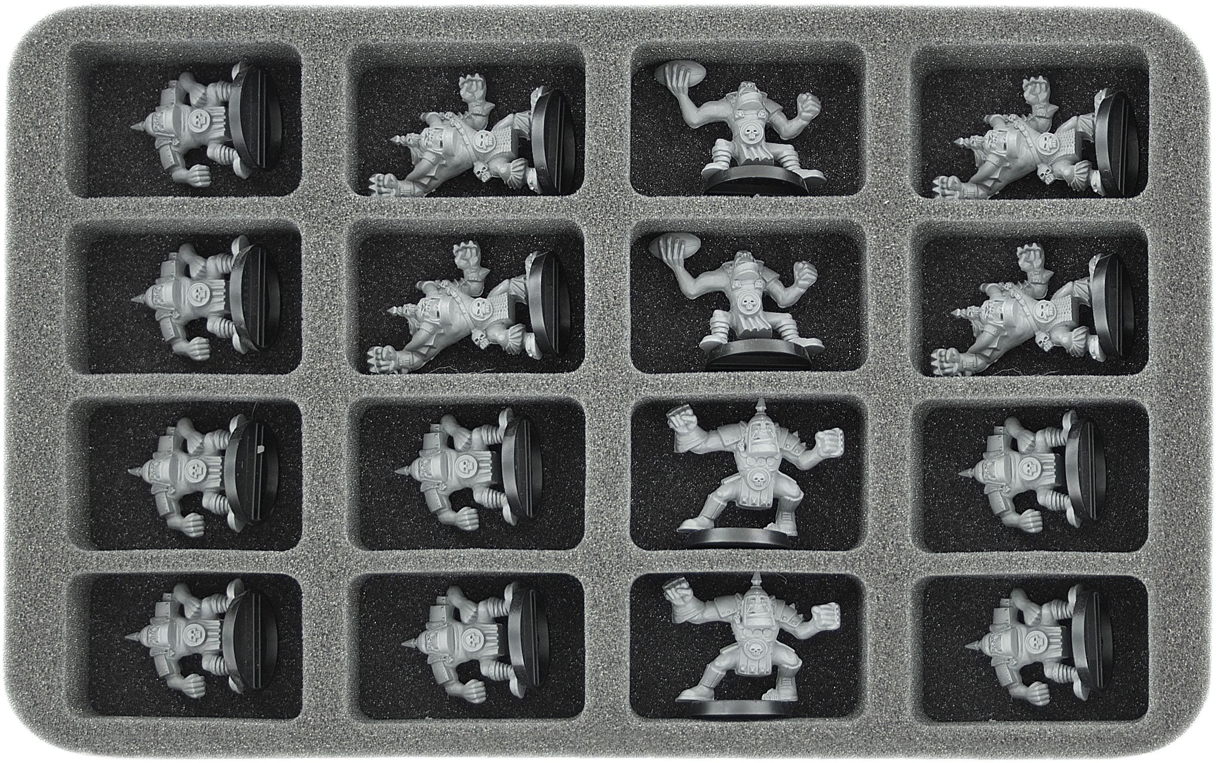 This Feldherr foam tray has 16 same-sized compartments for the clear and safe storage of wargaming miniatures in scale 1:100 (15 mm). The tray is thus ideally suited for miniatures of e. g. the games "Flames of War" or “Dropzone Commander".