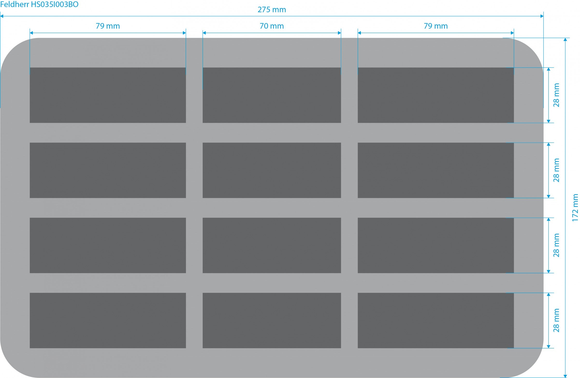 HS035I003BO 35 mm Half-Size foam tray with 12 compartments