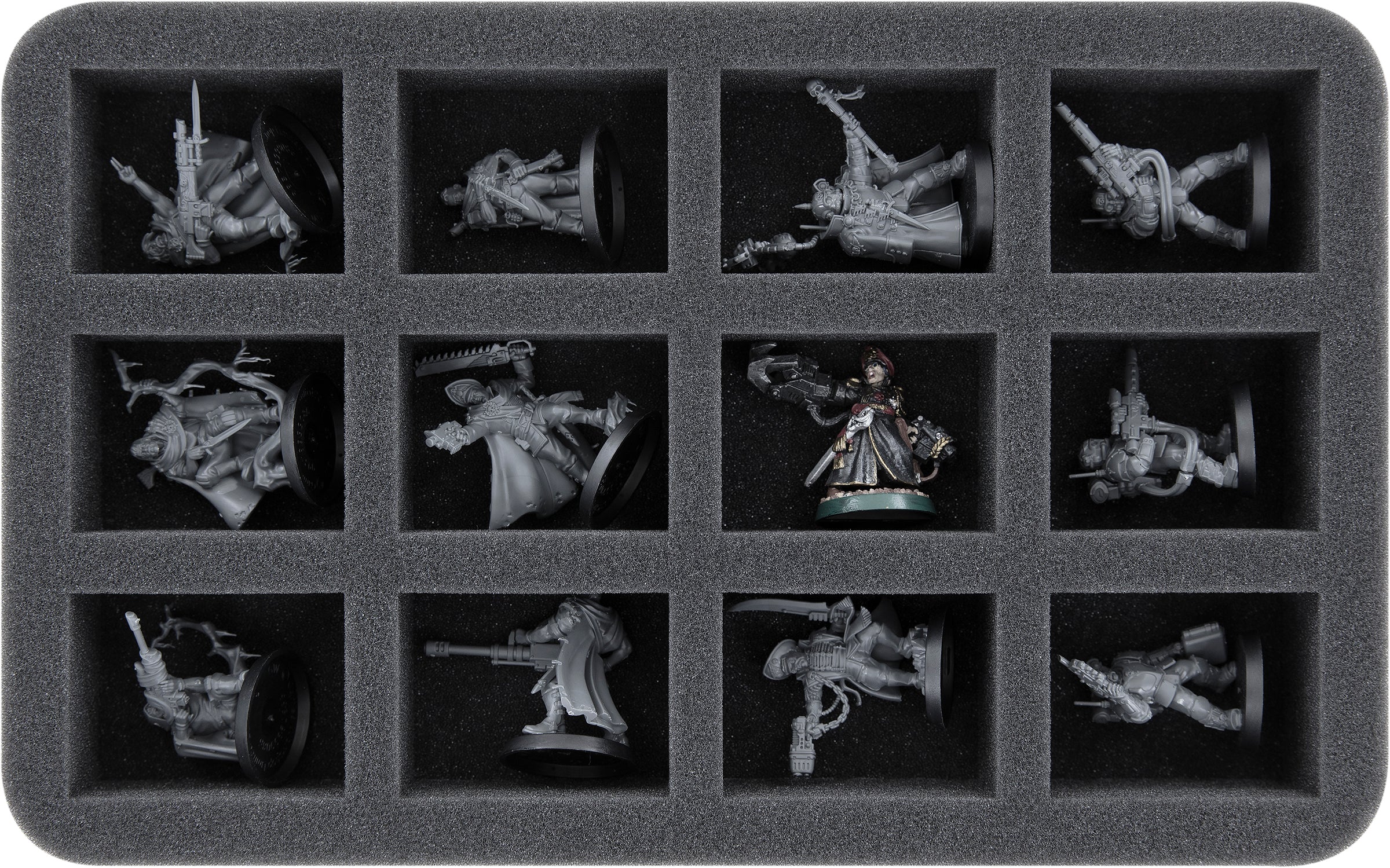 On this Feldherr foam tray you have space for up to 12 miniatures of your army. The insert is especially suitable for storing the Gaunt's Ghosts, Cadian Shock Troops and similar sized models.