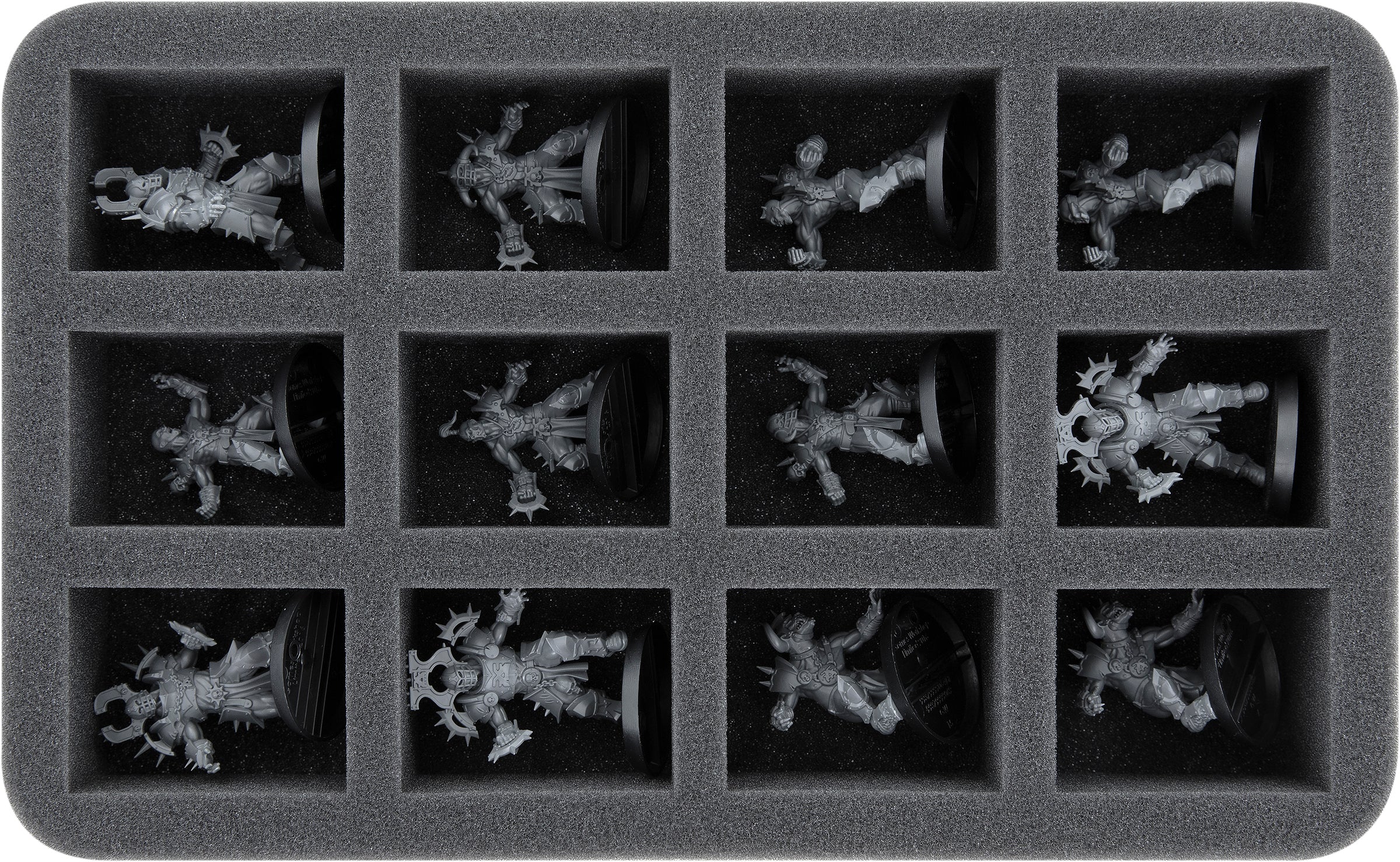 In the twelve compartments of the foam tray, each player of the team is assigned their compartment. Six Bloodborn Marauder Linemen, four Bloodseekers, and two Khorngors have a tight fit thanks to the custom-fit compartments and can not slip even when transported through the fan community.