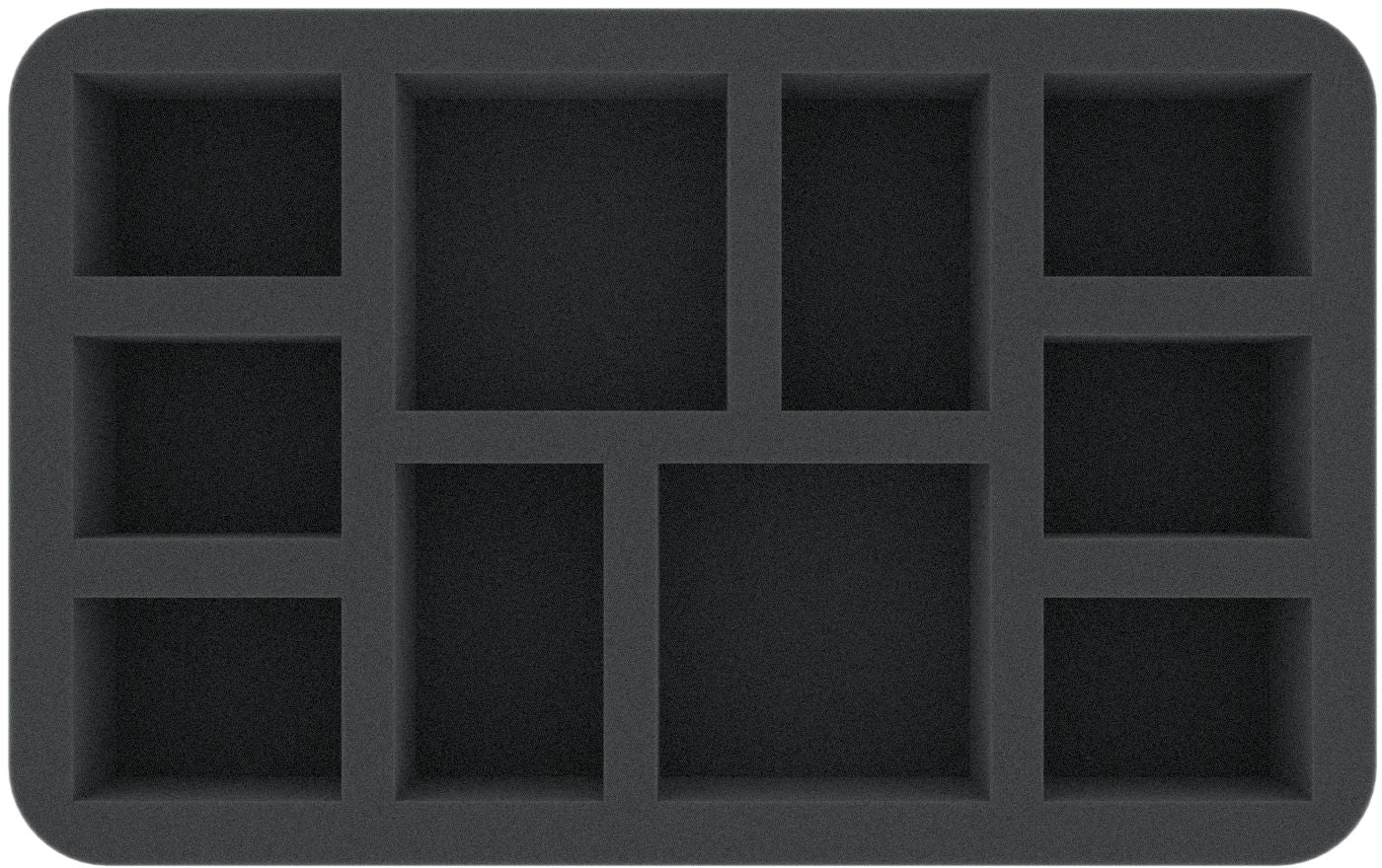 This Feldherr foam tray has 10 compartments for the safe and clear storage of your warband miniatures. It is ideally suited for e.g. Corvus Cabal or Iron Golem. The fine-pored foam reliably protects your miniatures from damages – fragile parts stay intact, sensitive surfaces do not get scratched.