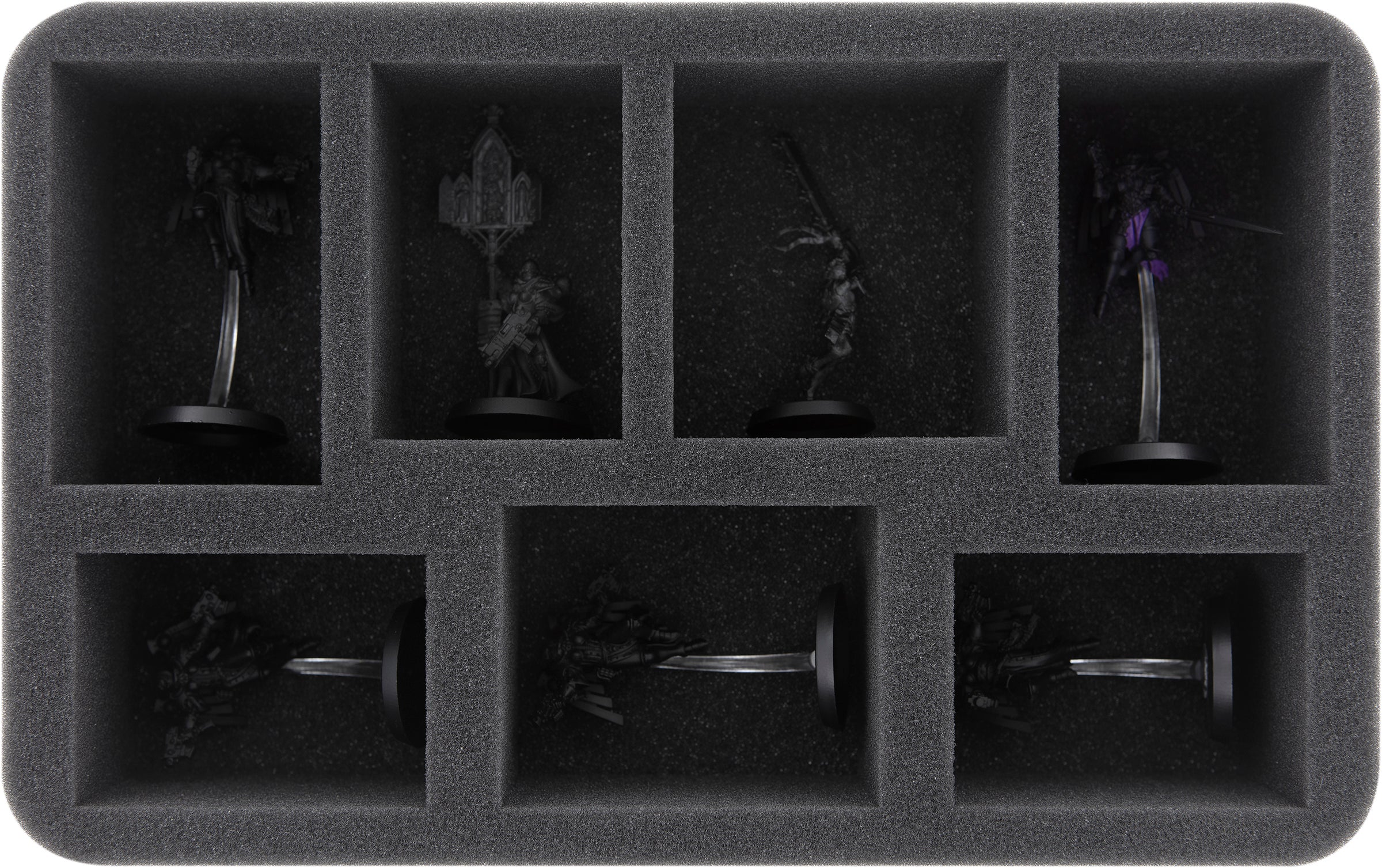 With this Half-Size foam tray you get 7 different sized compartments to protect your Sisters of Battle. It is especially suitable for bulky miniatures or warriors on flying bases.