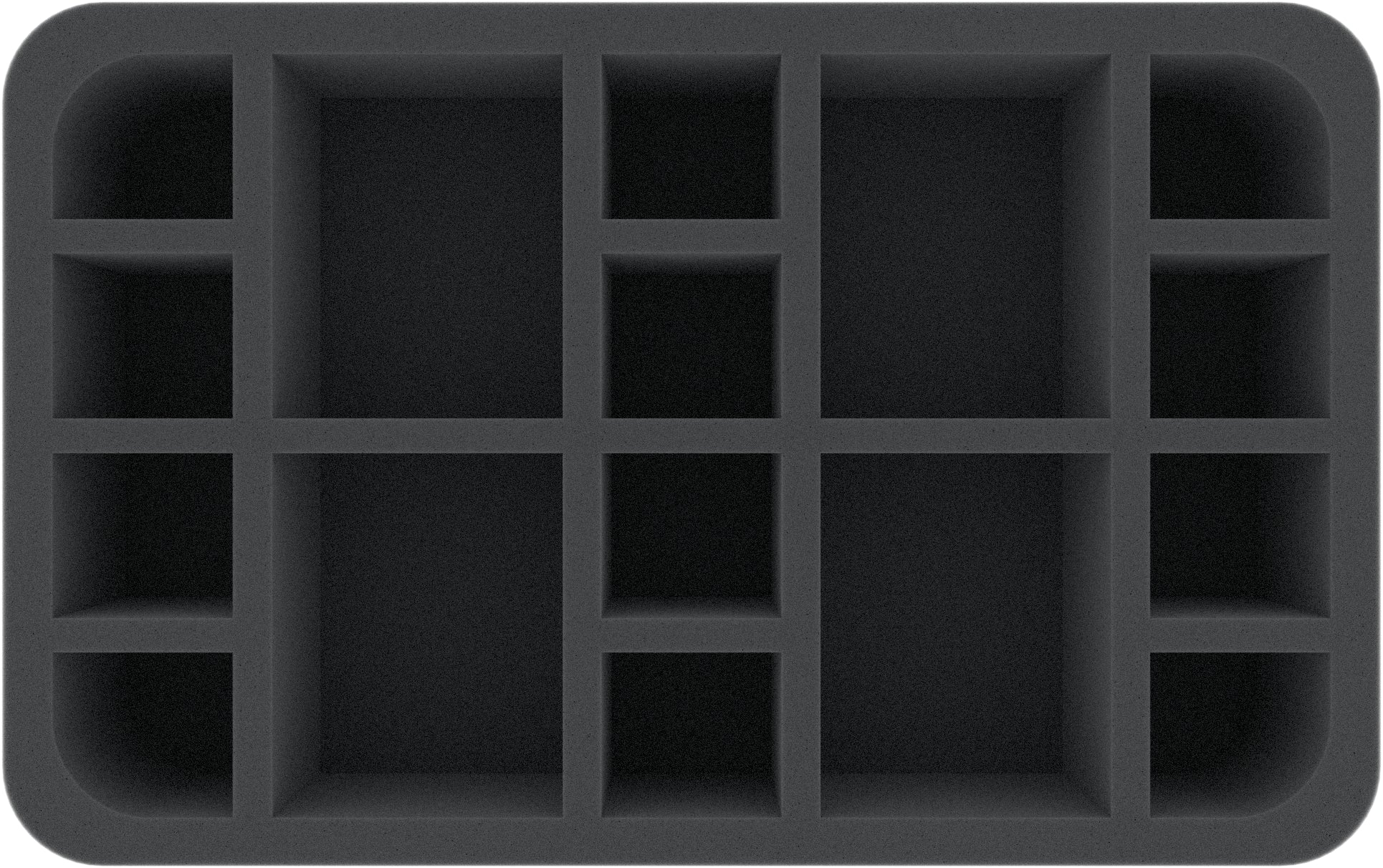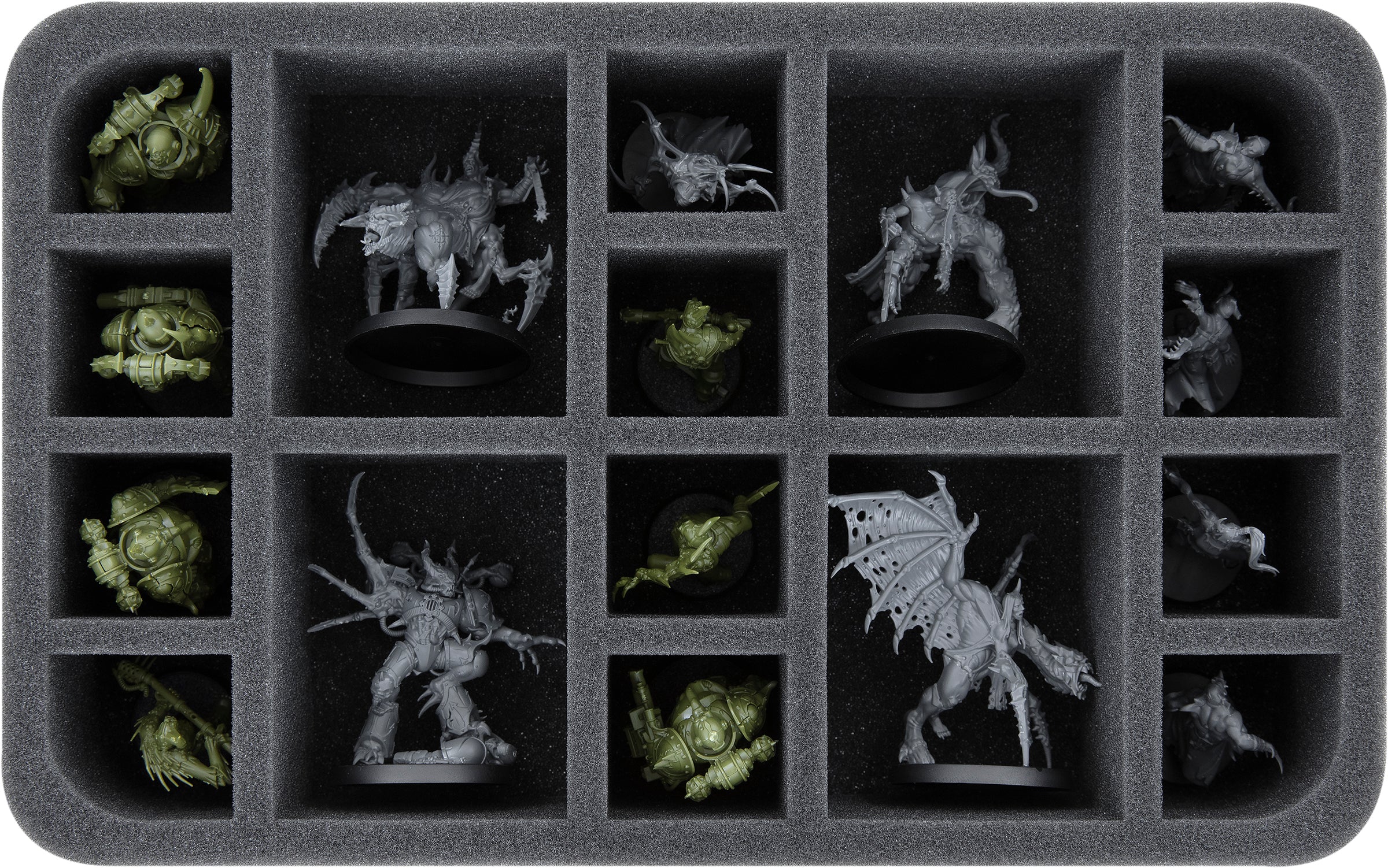 A total of 16 compartments in 2 different sizes on this Half-Size foam tray protect your hideous Chaos Space Marines. Small and medium-sized miniatures find safe shelter here, and you can transport them safely.