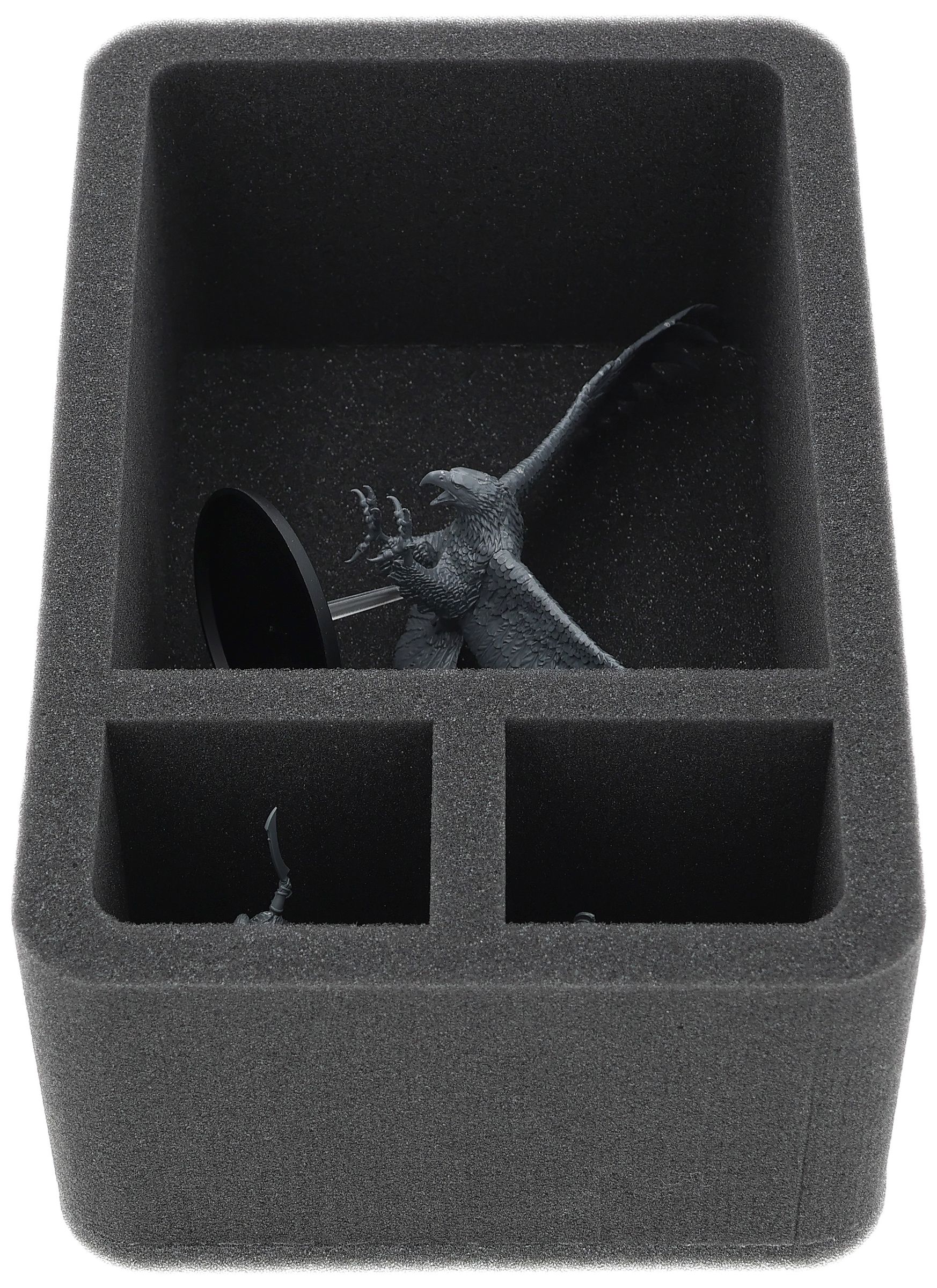 On this Feldherr foam tray you have space for up to 3 miniatures of your army. The insert is especially suitable for storing the Great Eagles of the misty mountains and similar sized models.