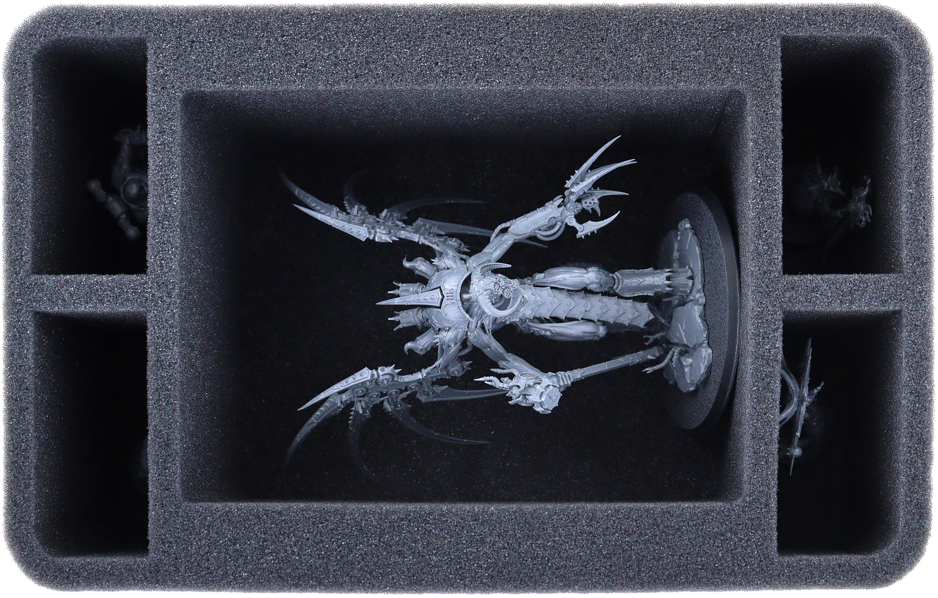 To minimize your worries, we offer a suitable solution: This tailor-made Feldherr foam tray offers your model a large, secure compartment where you can bed Vashtorr for transport. Additional compartments are used to store smaller infantry units such as Chaos Space Marines or Chaos Space Marine Havocs.