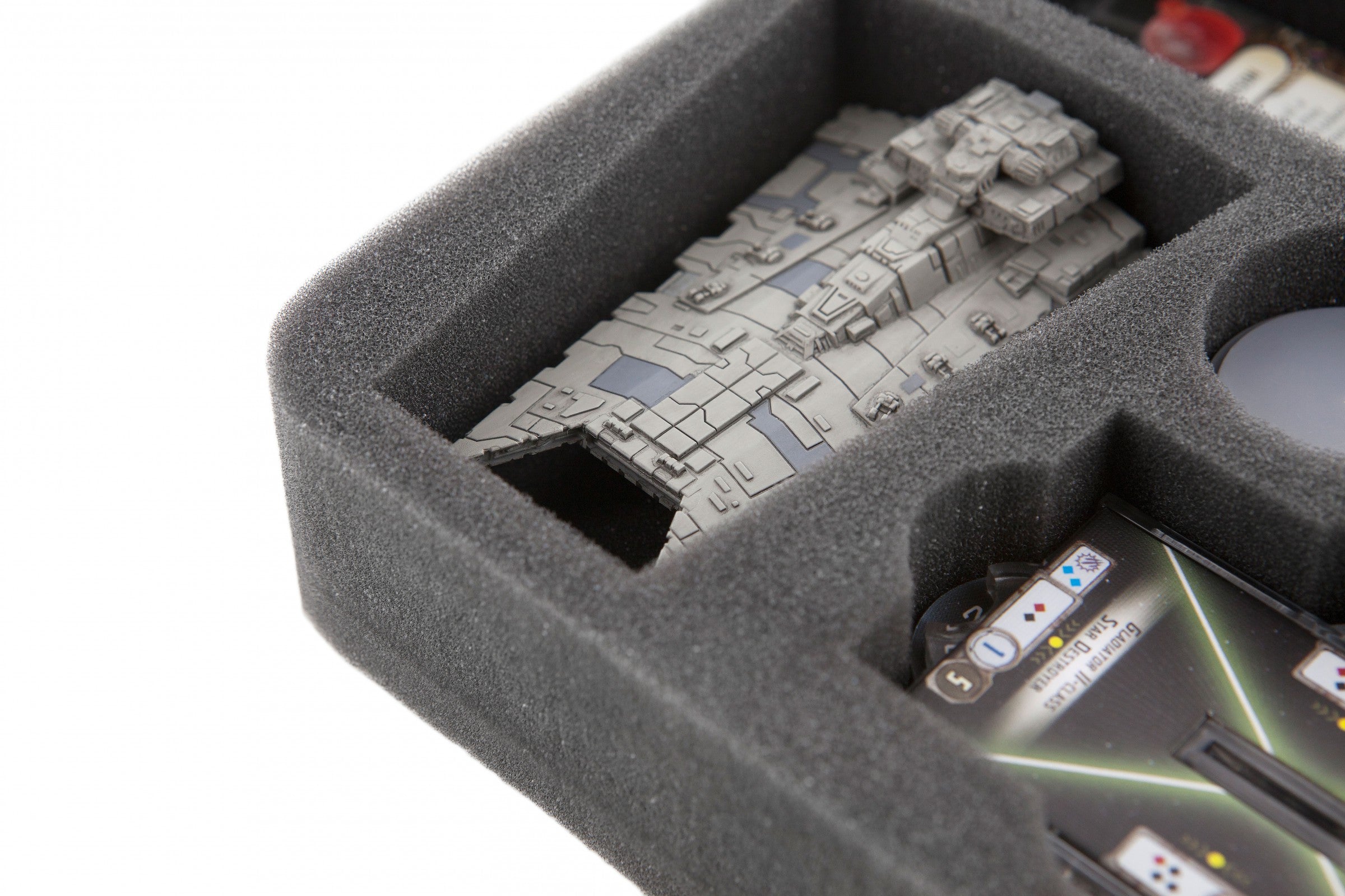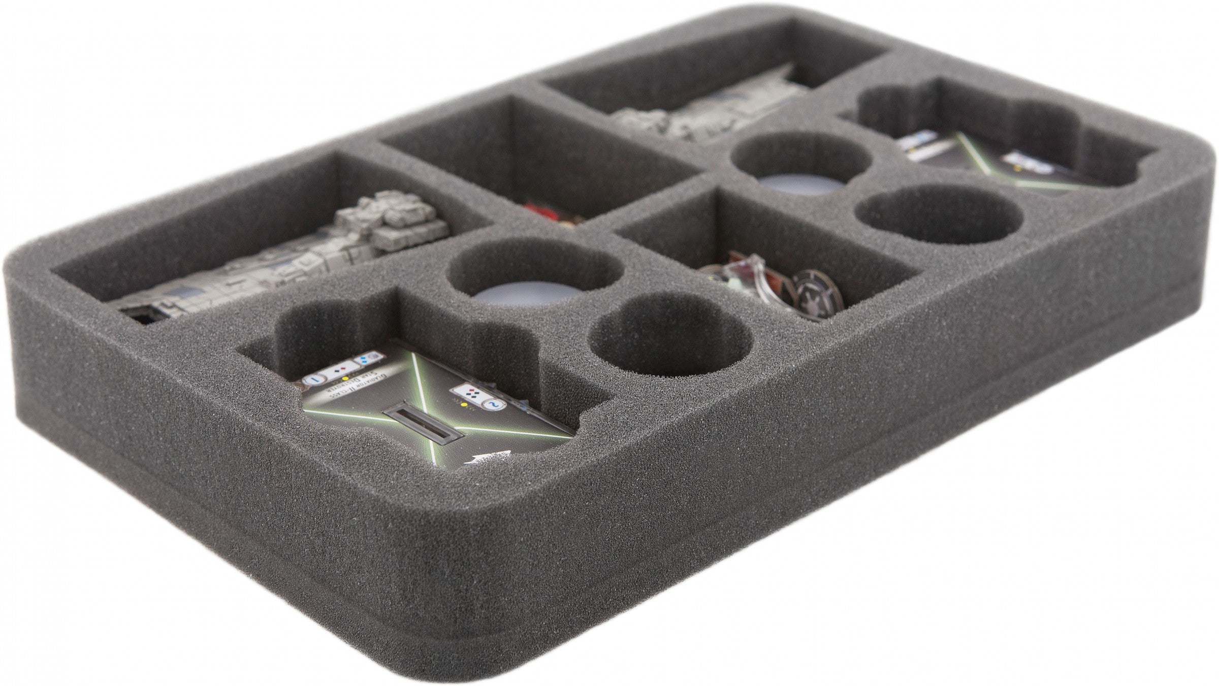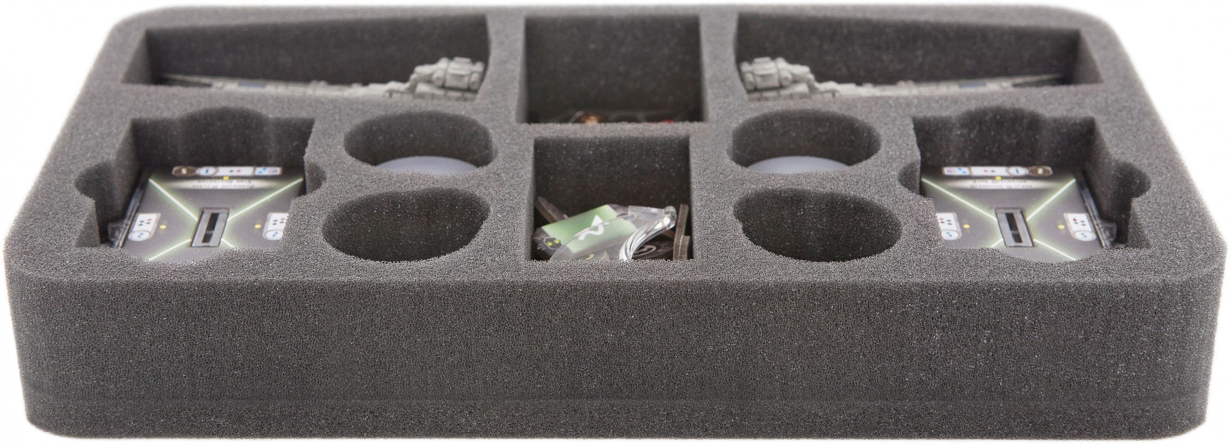 Especially for the Star Wars Armada Gladiator-Class Star Destroyer tailored foam tray. There is enough space to store two Assault Frigate Mark II, bases plus extra space for token or dice.