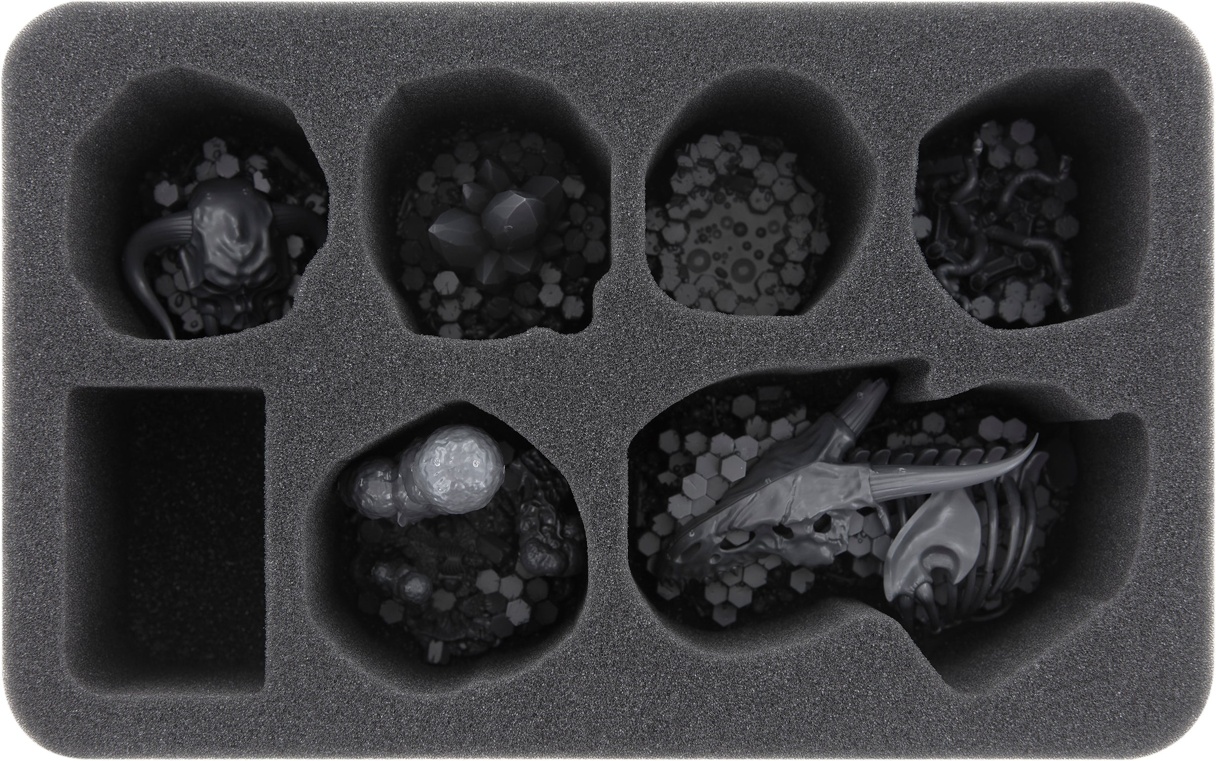 Wrapped in soft foam, the miniatures remain in place even on uneven paths and are optimally protected against transport and storage damage. Sensitive elements, such as tentacles and horns, remain undamaged, and elaborately painted models return to the game board unharmed and without scratches.