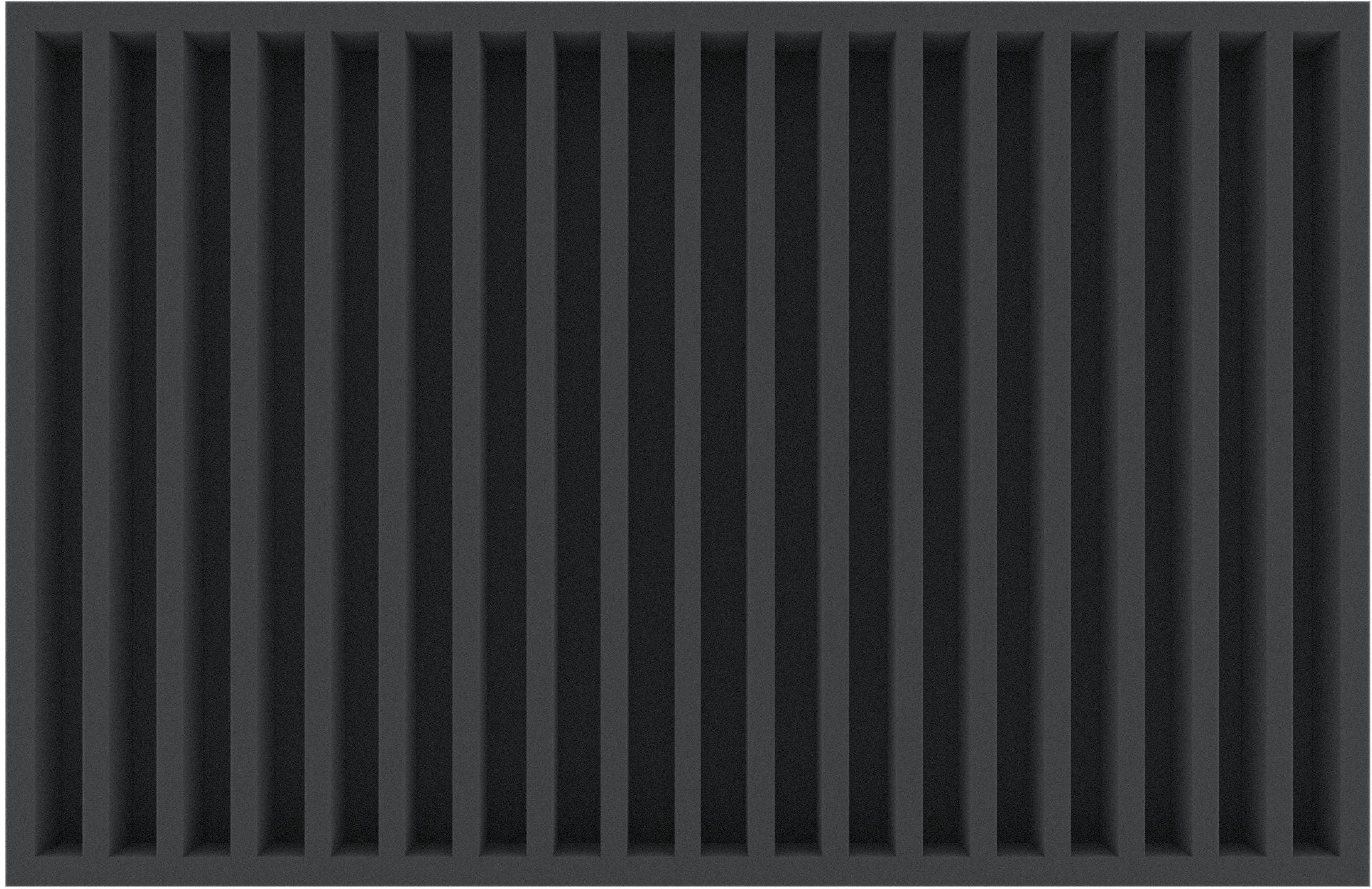 The foam insert has the dimensions: 570 mm x 370 mm x 40 mm total height (30 mm usable height + 10 mm foam base).