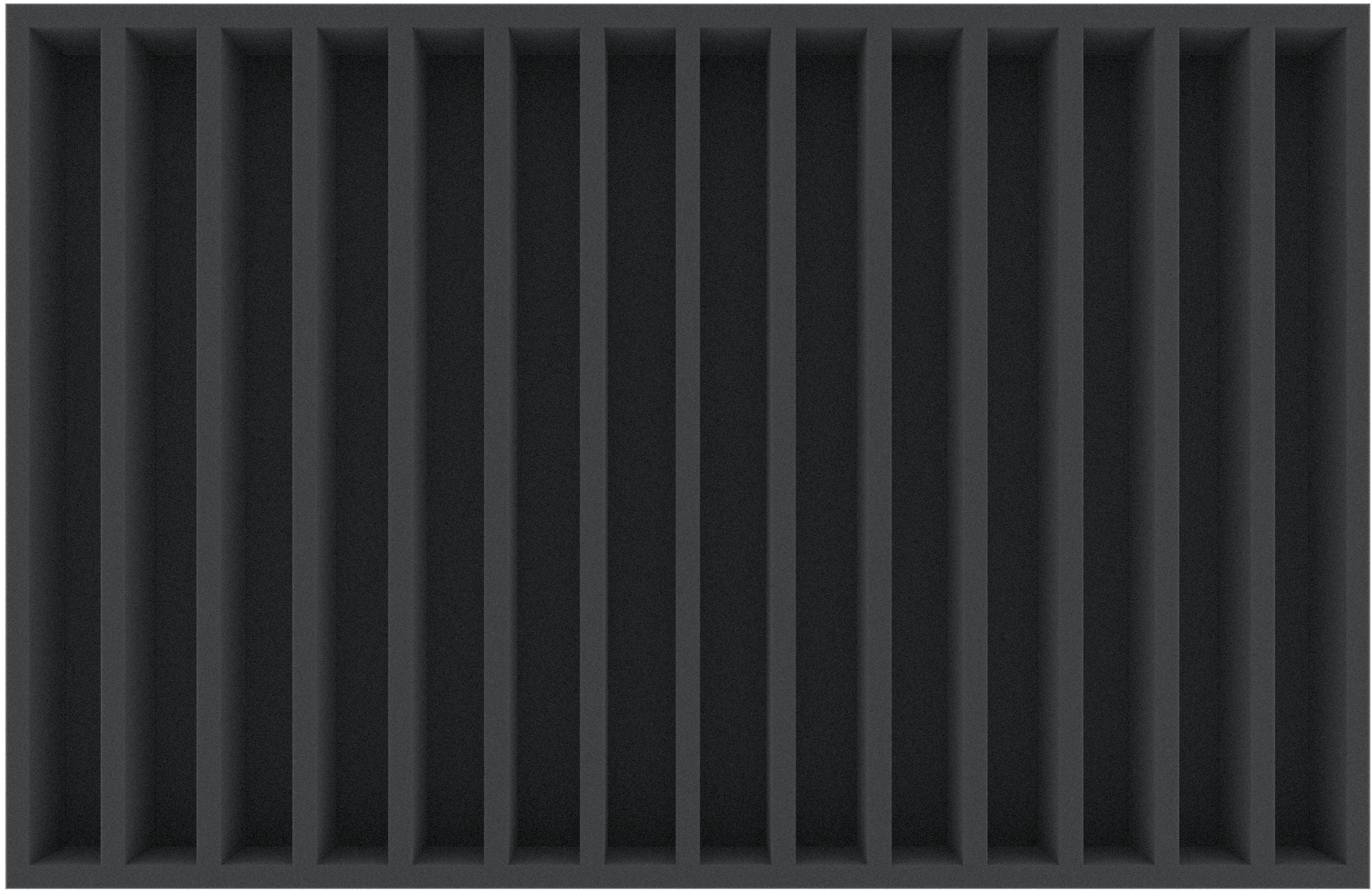 This 50 mm high foam tray is divided into 14 compartments. It is particularly suitable for the safe storage of tabletop and board game miniatures, model trains, as well as other fragile models and small parts.